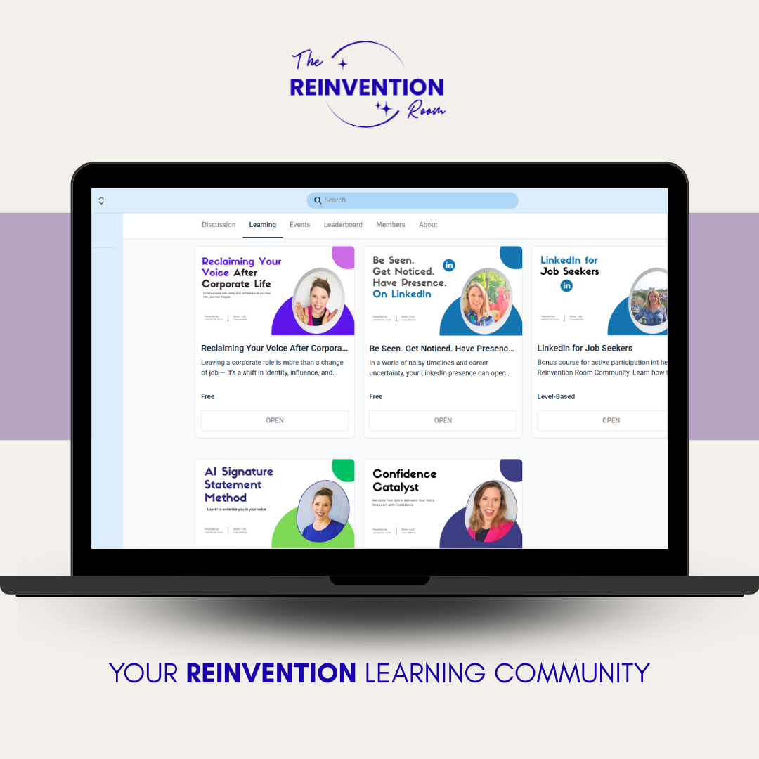 That’s why I created The Reinvention Room. It’s not just another course or networking group. It’s a complete support system:
